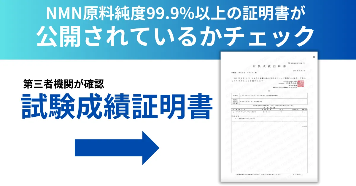 高品質なNMNサプリを選ぶポイントは、NMNの原料純度が高いかどうか。